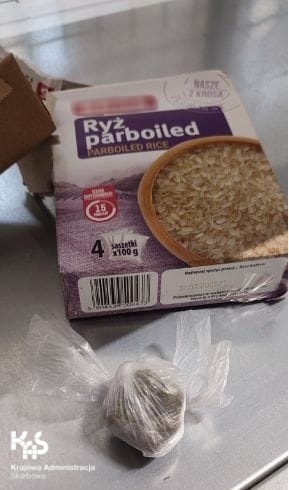 Podczas kontroli pies służbowy Hunter wskazał dwie przesyłki zawierające marihuanę. W jednej z przesyłek narkotyki były ukryte w torebce po ryżu.