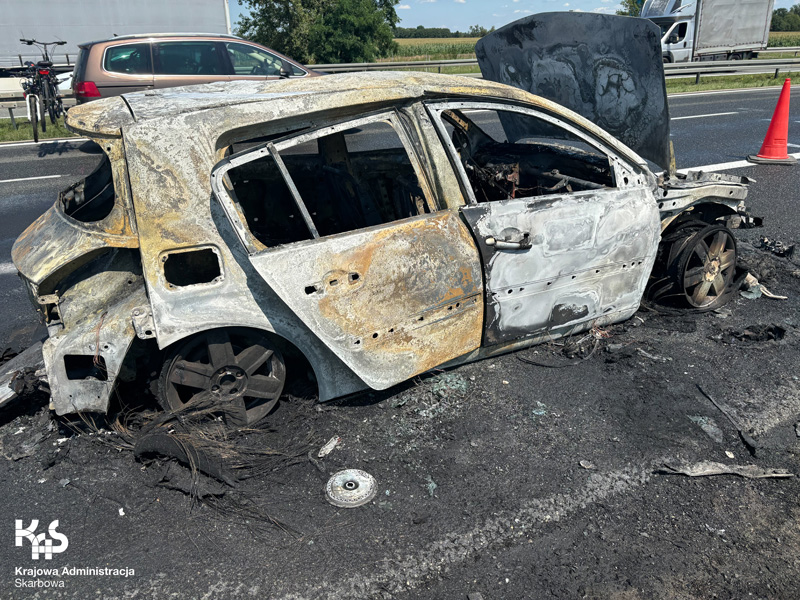 W ub. poniedziałek, tj. 15 lipca 2024 roku podczas służby na opolskim odcinku autostrady A4 funkcjonariusze Krajowej Administracji Skarbowej zauważyli na pasie awaryjnym samochód, z którego wydobywał się dym. Mundurowi z KAS zabezpieczyli miejsce zdarzenia, wezwali służby ratunkowe i zaprowadzili pasażerów z dala od płonącego pojazdu. Do czasu przyjazdu Straży Pożarnej, próbowano ugasić płonący samochód. Po przybyciu na miejsce, strażacy opanowali pożar.