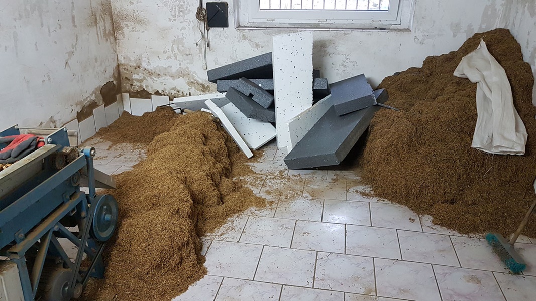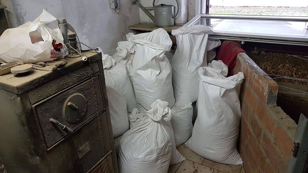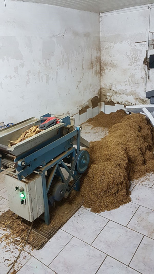 W piwnicy budynku ujawniono susz tytoniowy w belach, tytoń krojony do palenia, maszynę do cięcia tytoniu oraz woreczki do jego konfekcjonowania. Na miejscu funkcjonariusze zatrzymali właściciela budynku oraz obywatela Ukrainy, odpowiedzialnego za obsługę maszyny do cięcia tytoniu. Ustawiony na podjeździe namiot miał kamuflować przeładunek nielegalnego towaru.