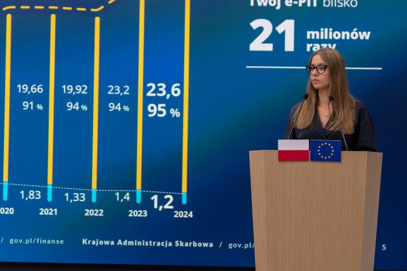 „W tym roku w usłudze Twój e-PIT została złożona rekordowa liczba 14,3 mln dokumentów – to pół miliona więcej niż rok temu. Prawie 8,3 mln deklaracji podatnicy zaakceptowali samodzielnie a kolejne 6 mln zostało zaakceptowanych automatycznie. Wzrost popularności Twój e-PIT świadczy o rosnącym zaufaniu do usług Krajowej Administracji Skarbowej" – podkreśla podsekretarz stanu w Ministerstwie Finansów, zastępca Szefa KAS Małgorzata Krok.